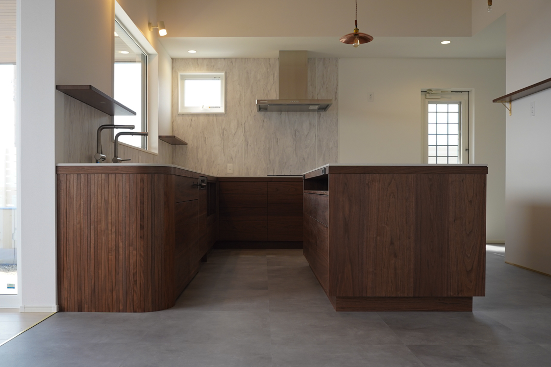 シーザーストーンとウォルナットのキッチンを施工例に追加しました。